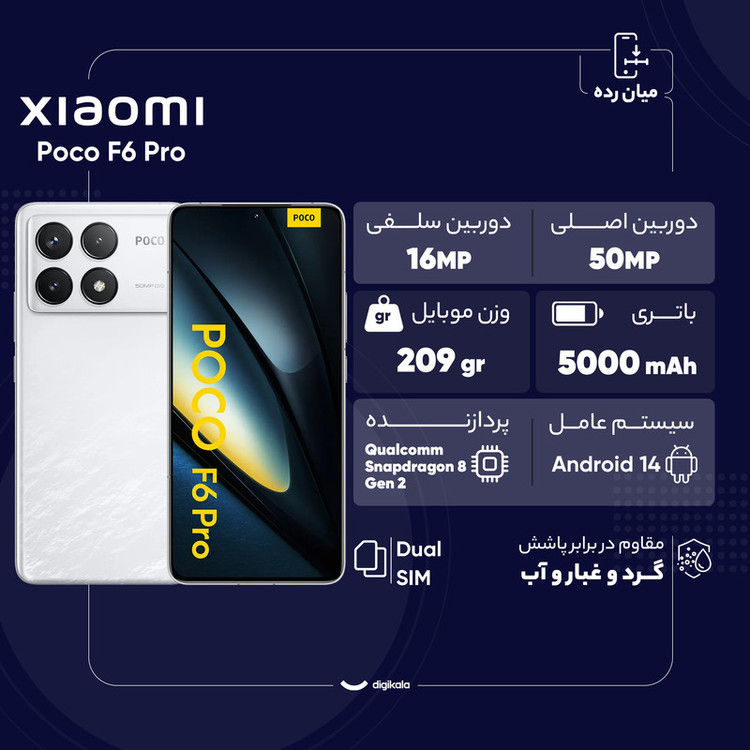 گوشی موبایل شیائومی مدل Poco F6 Pro، یک گوشی هوشمند قدرتمند و همهکاره است که برای افرادی که به دنبال عملکرد عالی و فضای ذخیرهسازی زیاد هستند، انتخاب مناسبی است. این گوشی با نمایشگر 6.67 اینچی AMOLED با نرخ نوسازی 120 هرتز و رزولوشن 3200x1440 پیکسل، تجربه بصری بینظیری ارائه میدهد. تراشه قدرتمند Snapdragon 8 Gen 2 با هشت هسته و پردازنده گرافیکی Adreno 740، قدرت بالایی برای اجرای برنامههای سنگین و بازیها فراهم میکند. دوربین اصلی 50 مگاپیکسلی با قابلیتهای فوکوس خودکار و لرزشگیر اپتیکال تصویر، به همراه دوربین اولترا واید هشت مگاپیکسلی و ماکرو دو مگاپیکسلی، امکانات عکاسی متنوعی ارائه میدهد. باتری 5000 میلیآمپر ساعتی با پشتیبانی از شارژ سریع 120 وات، تنها در 19 دقیقه به طور کامل شارژ میشود. ظرفیت 512 گیگابایت و رم 12 گیگابایت در این گوشی، ذخیرهسازی فایلهای بسیاری را ممکن میسازد. این گوشی با وزن 209 گرمی، نسبتا خوش دست محسوب میشود و با سیستمعامل اندروید 14 و رابط کاربری HyperOS تجربه کاربری روان و مدرنی را به کاربران ارائه میدهد. این محصول برای کسانی که به دنبال یک گوشی با کارایی بالا و طراحی زیبا هستند، گزینهای ایدهآل است.
